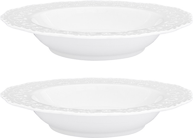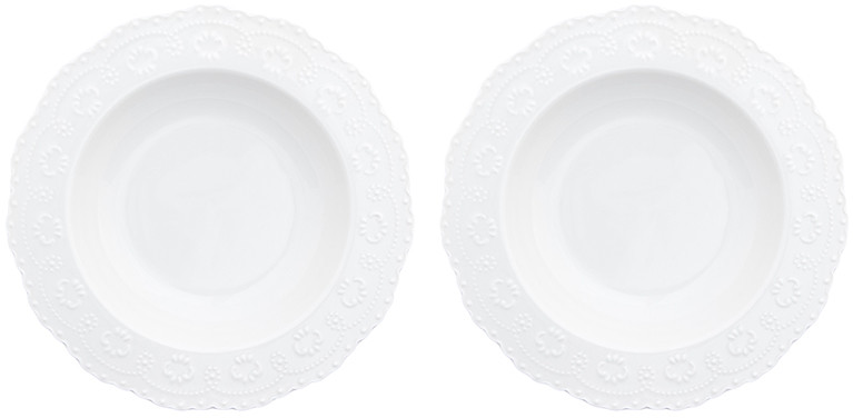 Elan Gallery Набор тарелок суповых «Белый узор»внешний вид тяжёлые сколы В данный момент этот товар отсутствует в продаже. Возможно, у нас найдется аналогичный или похожий товар здесь. Серия: Белый узор Набор суповых тарелок серии «Белый узор» выполнен из высококачественного фарфора и состоит из двух предметов. Тарелки простого лаконичного дизайна с изящным узором по краю можно мыть в посудомоечной машине и использовать в микроволновой печи. |