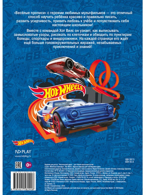 Серия: Hot Wheels «Веселые прописи» с героями любимых мультфильмов — это отличный способ научить ребенка красиво и правильно писать, развить усидчивость, привить любовь к учебе и почувствовать себя настоящим школьником! |
