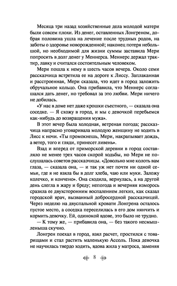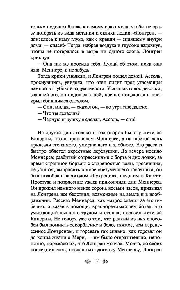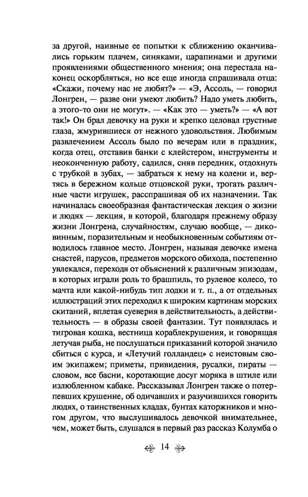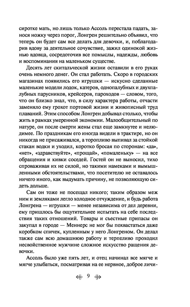 Сама по себе история "Алые паруса" такая же красивая и милая какой была, когда я её читала в школе, вот только она составляет буквально несколько десятков страниц книги. Всё остальное - роман "Бегущая по волнам", оказавшийся откровенно скучным и неинтересным, да и на обложке о нем ничего заявлено не было