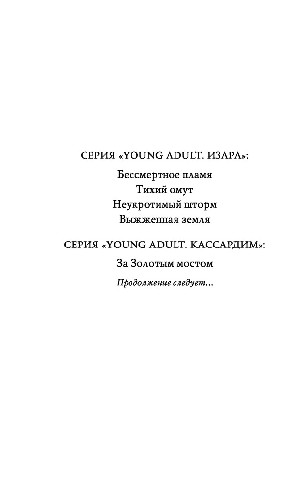 В данный момент этот товар отсутствует в продаже. Возможно, у нас найдется аналогичный или похожий товар  здесь. Серия: Young Adult. Кассардим Амайе исполнилось шестнадцать. Уже восьмой раз подряд. Ее родители не стареют, а братья и сестры не похожи друг на друга. Девушка любыми способами пытается выяснить, кто она на самом деле. Но мать и отец делают все возможное, чтобы сохранить семейную тайну: постоянные переезды, строгие правила и даже контроль над разумом давно стали чем-то привычным для Амайи. Однако все меняется, когда в их доме появляется пленник. Таинственный юноша по имени Ноар пришел, чтобы открыть Амайе правду. Но для этого девушке придется отправиться в Кассардим — царство мертвых, куда живым путь закрыт. Готова ли Амайя навсегда оставить земную жизнь ради правды или человеческому сердцу не дано покинуть этот мир?  |