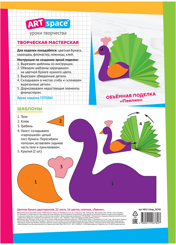 ArtSpace Набор цветной бумаги «Павлин»-30%