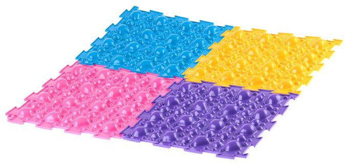 Напольное ортопедическое покрытие является уникальным средством профилактики и лечения детского плоскостопия в домашних условиях. По массажному коврику можно ходить или выполнять зарядку стоя на нем.