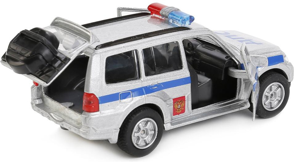 Даже такие эффектные и популярные внедорожники, как Mitsubishi Pajero, могут находиться на службе у полиции. Данная модель является тому подтверждением, так как выполнена именно в виде такого джипа и обладает полезными для игры возможностями, благодаря которым ребенку не будет скучно использовать такую машину в своих сюжетах.