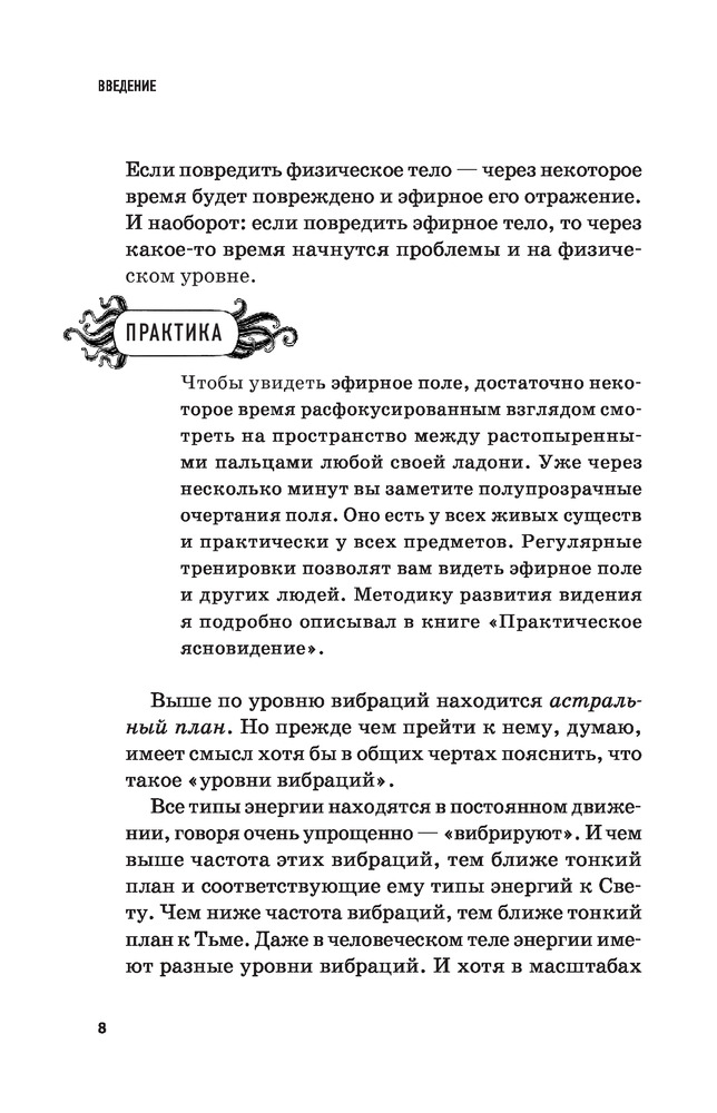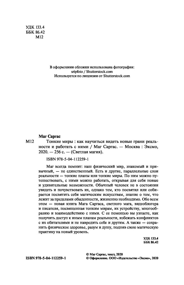 Серия: Светлая магия Маг всегда помнит: наш физический мир, знакомый и привычный, — не единственный. Есть и другие, параллельные слои реальности — тонкие планы или тонкие миры. По ним можно путешествовать, с ними можно работать, открывая для себя новые и удивительные возможности. Обычный человек не в состоянии увидеть и почувствовать их, однако тем, кто посвятил или собирается посвятить себя магическим искусствам, знание о том, что лежит за пределами обыденности, жизненно необходимо. Обо всем этом — новая книга Мага Саргаса, светлого мага, видеоблогера и писателя, посвященная тонким мирам, их устройству, многообразию и взаимодействию с ними. С ее помощью вы узнаете, как получить доступ к иным планам реальности, избежать конфликтов с их обитателями и не навредить себе и другим. А также — сохранить физическое здоровье, разум и душу, подняв свою магическую практику на новый уровень. |