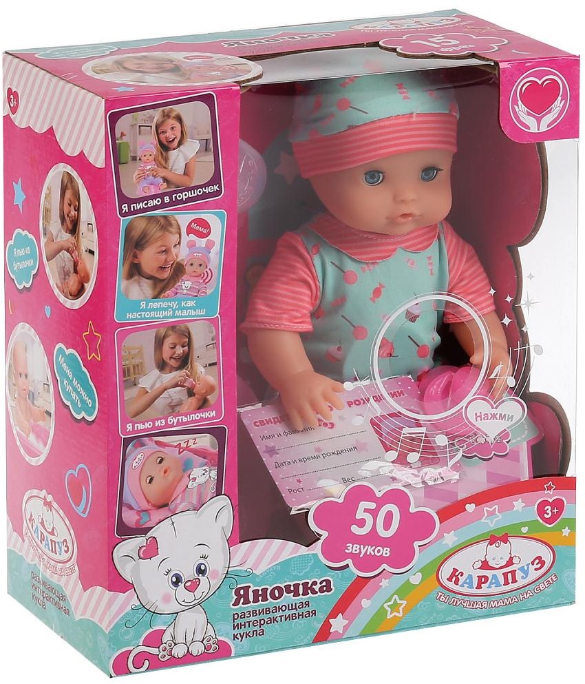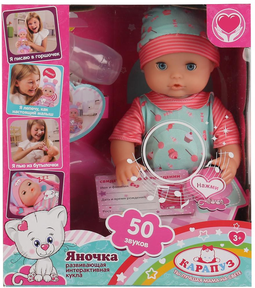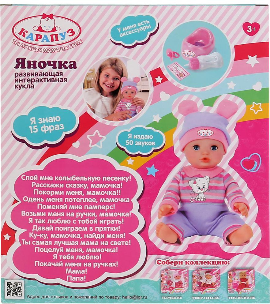 Карапуз Пупс «Яночка»В данный момент этот товар отсутствует в продаже. Возможно, у нас найдется аналогичный или похожий товар здесь. Очаровательная куколка выглядит, словно настоящая малышка младенческого возраста с детально проработанным личиком и характерно пухлыми щечками, выразительными глазками и розовыми губками. Яночка одета в костюмчик и шапочку. Кукла произносит 15 фраз и издает 50 звуков. |