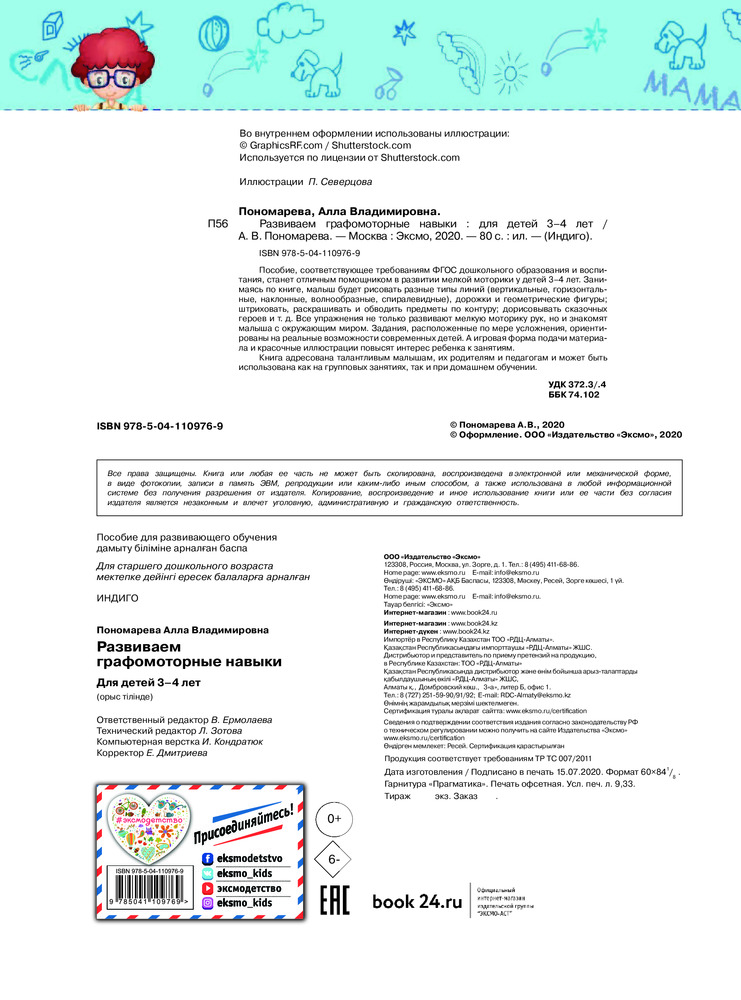 💳 Оплатить за товар можно при получении 🇰🇿 Есть бесплатная доставка по Казахстану 🎁 Копите бонусы с каждой покупки Серия: Индиго (обложка) Пособие станет отличным помощником в развитии мелкой моторики у детей 3-4 лет. Занимаясь по книге, малыш будет рисовать разные типы линий (вертикальные, горизонтальные, наклонные, волнообразные, спиралевидные), дорожки и геометрические фигуры; штриховать, раскрашивать и обводить предметы по контуру; дорисовывать сказочных героев и т. д. Все упражнения не только развивают мелкую моторику рук, но и знакомят малыша с окружающим миром. Задания, расположенные по мере усложнения, ориентированы на реальные возможности современных детей. А игровая форма подачи материала и красочные иллюстрации повысят интерес ребёнка к занятиям. Книга адресована современным талантливым малышам, их родителям и педагогам и может быть использована, как на групповых занятиях, так и при домашнем обучении. |