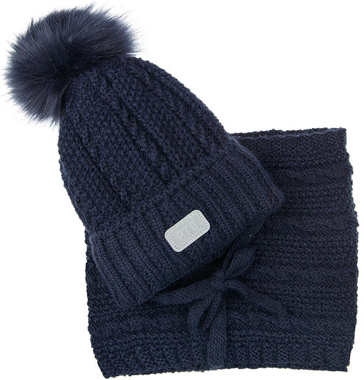 Комплект вязаный: шапка, снуд. Пряжа из акрила: легкая, теплая, гипоаллергенная. Помпон из искусственного меха снимается при необходимости. Модель утепленная. Подкладка трикотажная. Завязки. Отворот.