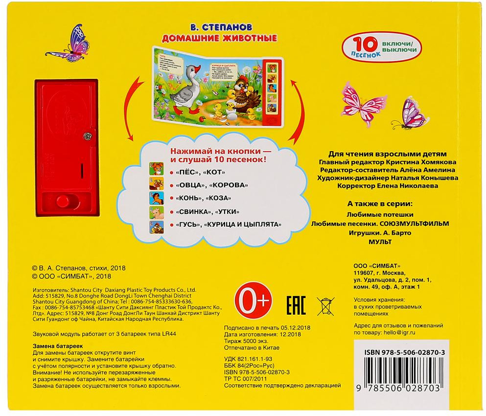 Серия: 5 кнопок Музыкальная книжка «Домашние животные» станет прекрасным подарком для ребёнка: |