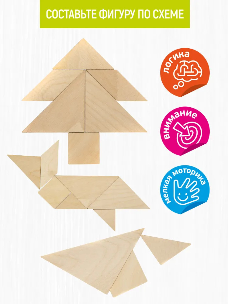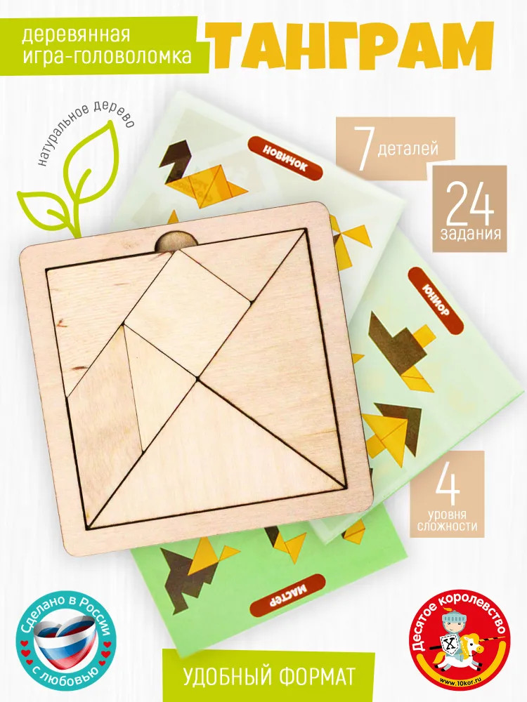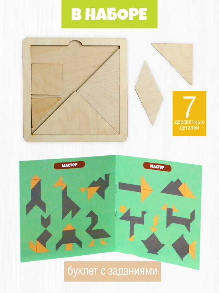 Серия: Танграм Игра «Танграм» — развивающая, логическая игра родом из Древнего Китая. Суть её проста. Детали игры яркие, цвета разные. Детям точно понравится их рассматривать и собирать. |