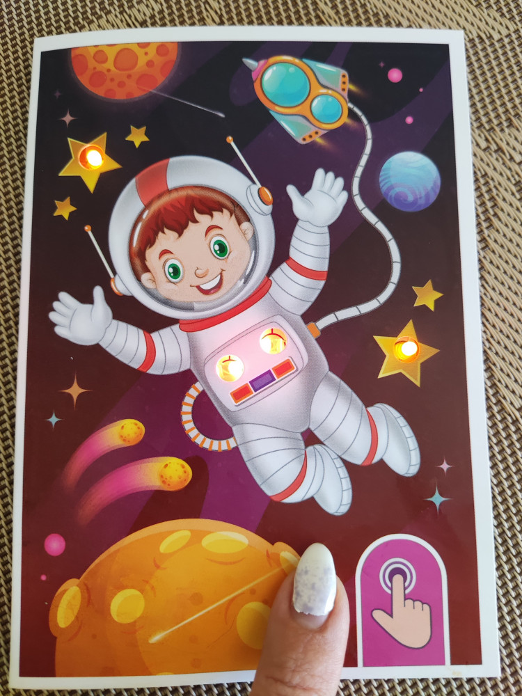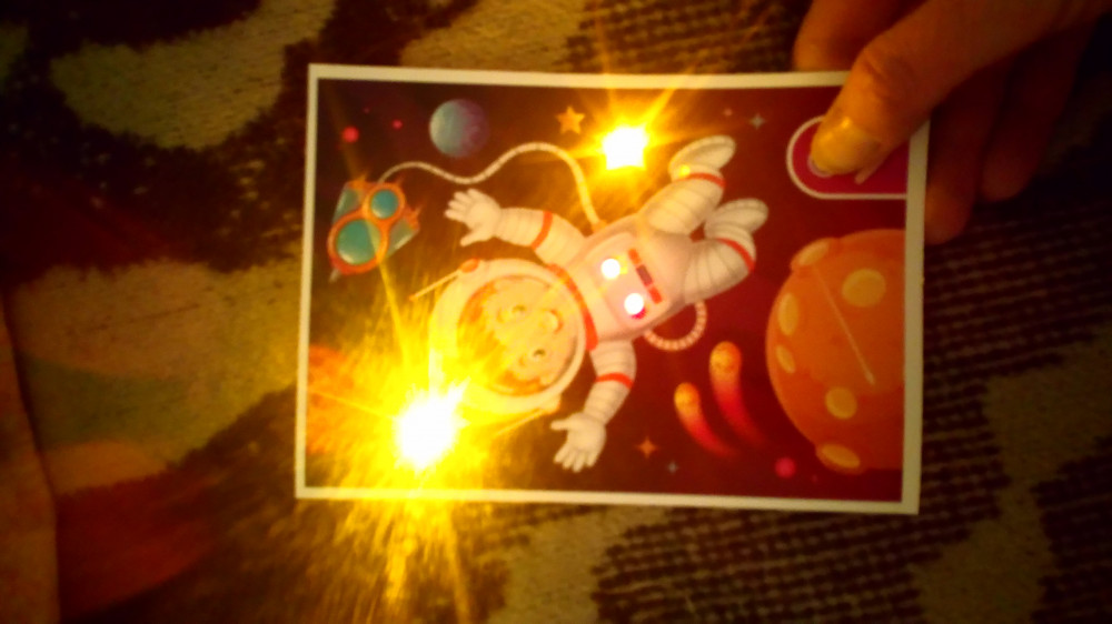 Отличный подарок для ребёнка, который любит что-то делать своими руками. Сыну 11 лет, всё сам собрал и был в восторге, когда лампочки зажглись. Только, перед сборкой, я сфотографировала схему, т.к. после того, как начинаешь клеить медные проводники, она теряется под ними. Лучше было бы продублировать схему сборки на упаковке. И не написано, какой стороной крепить батарейку. Сын не знал, поэтому наклеил сначала не той стороной. Надо было "плюсом" вниз. Очень интересная игра! Сын хочет теперь ещё что-то подобное собрать. Спасибо!