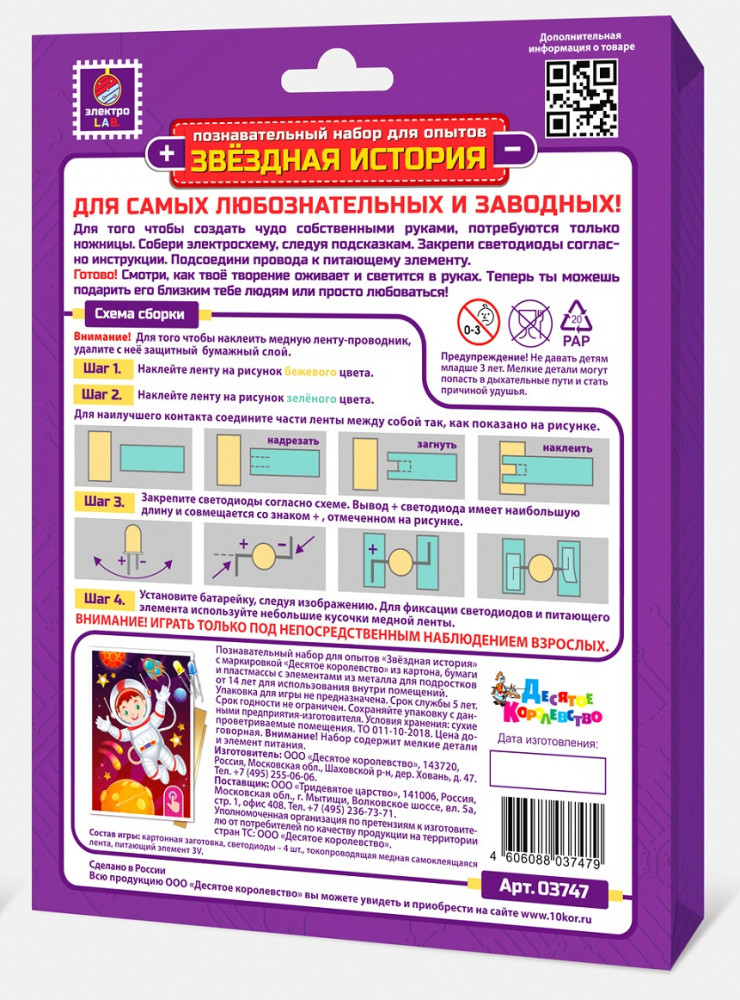 Серия: Звездная история Соберите свою первую электросхему с познавательным набором для опытов и творчества «Звёздная история. Космонавт»! |