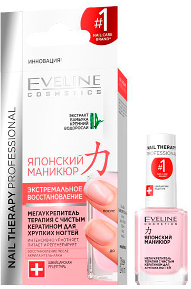 Eveline Cosmetics Средство для ухода за ногтями «Японский маникюр»В данный момент этот товар отсутствует в продаже. Возможно, у нас найдется аналогичный или похожий товар здесь. Снабжает ногтевую пластину ценными натуральными микроэлементами, ориентирован на увлажнение, питание, укрепление и утолщение кутикулы. В состав его питательных веществ входят витамины E + F, кератин и кремний. Cодержит истинное богатство полезных натуральных ингредиентов: морские водоросли, экстракт бамбука, чистый кератин, кремний из Японского моря. Уже после одного-двух применений уменьшает неровности и микроповреждения. Ногти идеально разглаживаются, возвращается блеск и естественный, здоровый вид. Через 14 дней ногтевая пластина уплотняется, обогащается минералами. |