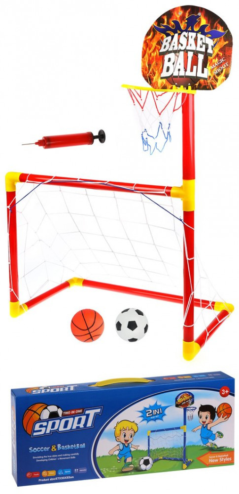 Физические нагрузки полезны для детского организма: они укрепляют мышечный корсет, развивают координацию движений, выносливость, меткость и ловкость. Набор 2 в 1 «Футбол и баскетбол» включает элементы для сборки ворот, сетку, щит с баскетбольным кольцом, 2 мяча и ручной насос. Играть можно самостоятельно, а можно устроить соревнования на количество забитых голов с друзьями.