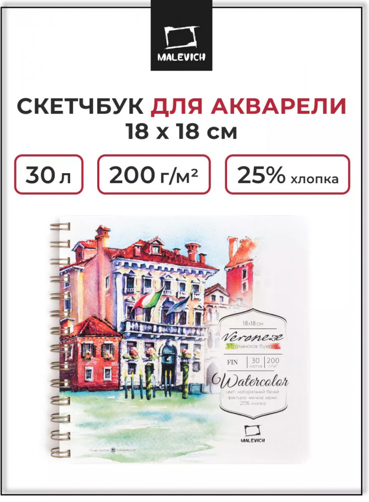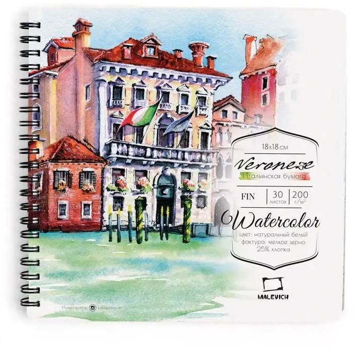 МалевичЪ Скетчбук для акварели «Veroneze»-20% +114 бумага качество бумаги слои краски