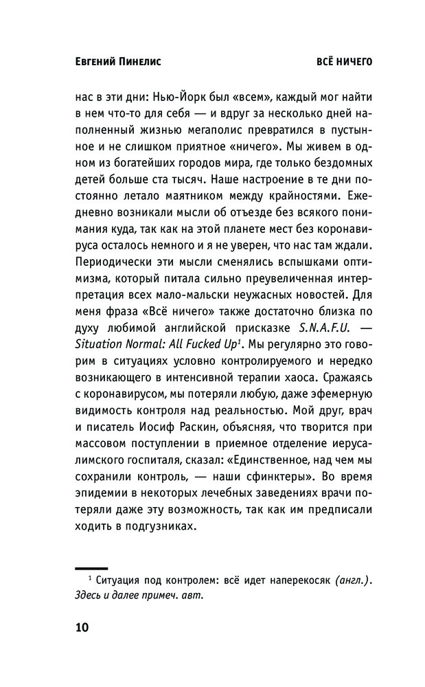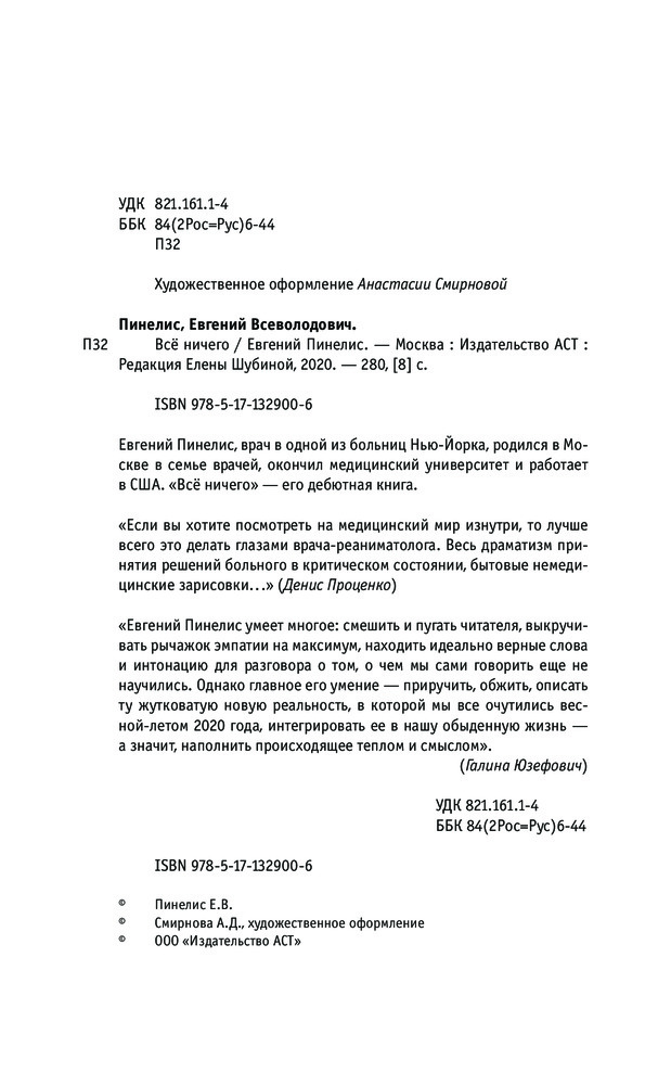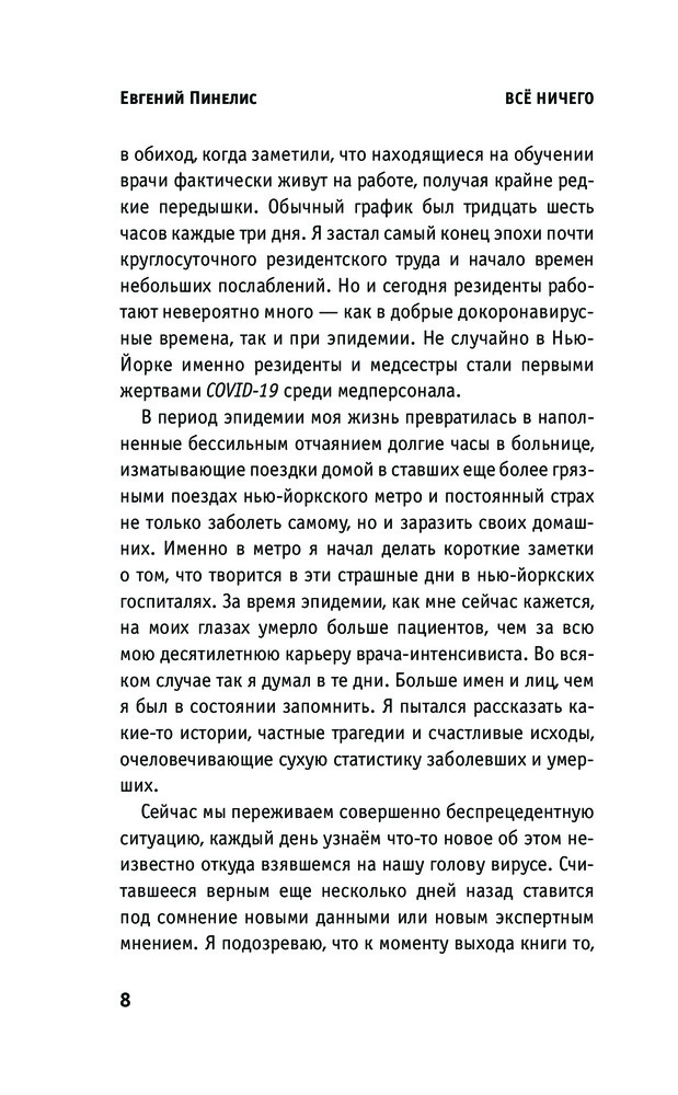Серия: Классное чтение Евгений Пинелис умеет многое: смешить и пугать читателя, выкручивать рычажок эмпатии на максимум, находить идеально верные слова и интонацию для разговора о том, о чем мы сами говорить еще не научились. Однако главное его умение — приручить, обжить, описать ту жутковатую новую реальность, в которой мы все очутились весной-летом 2020 года, интегрировать ее в нашу обыденную жизнь — а значит, наполнить происходящее теплом и смыслом. |