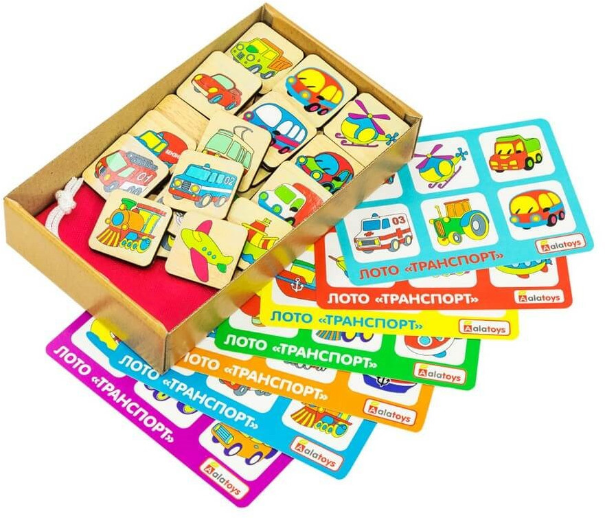 Лото — классическая настольная игра для всех возрастов! В набор входят деревянные картинки и семь картонных карточек с изображением транспорта и мешочек для хранения. Ведущий достает из мешочка по одной картинке. Задача игроков — собрать все картинки на своей карточке. Первый становится победителем! Лото от Алатойс — яркая, качественная игрушка. Она поможет в развитии речи, памяти и мелкой моторики ребенка. Веселый вечер в кругу семьи вам обеспечен! |