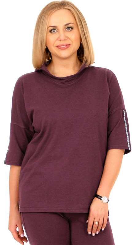 Стильный и уютный свитшот с удлиненной спинкой из теплого хлопкового полотна с лайкрой. Изделие прямого кроя с мягким воротником-стойкой, со спущенным плечом и рукавами длиной 3/4, украшенными репсовой лентой. Отличный выбор на каждый день!