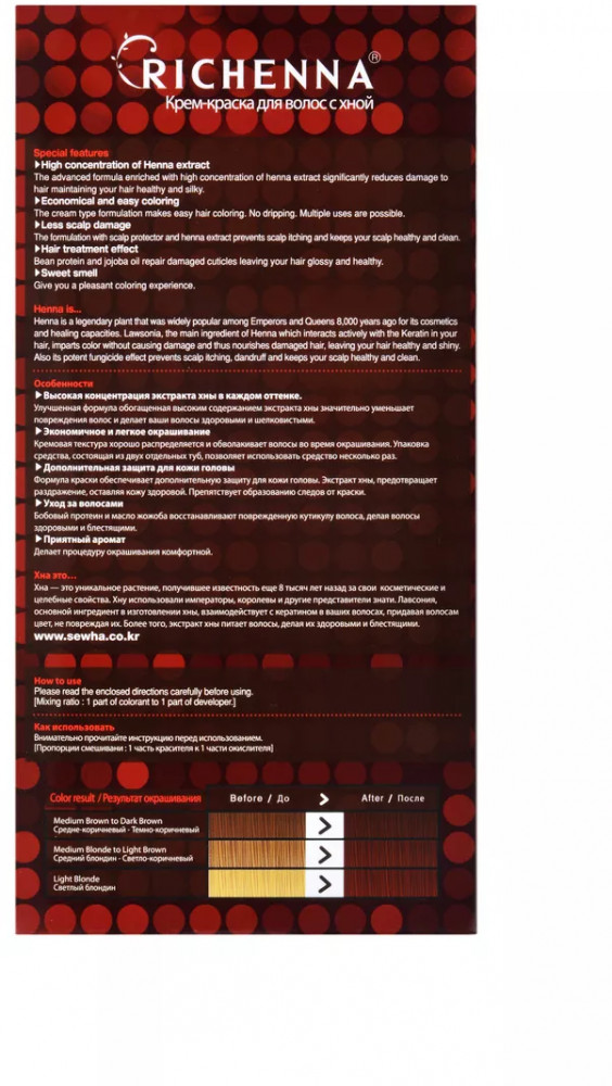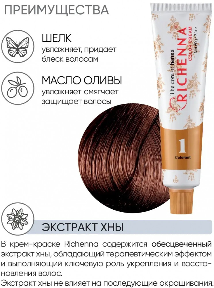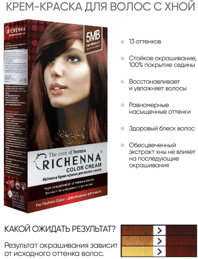 Richenna Крем-краска для волос с хной, оттенок 5MB Темно-красное дерево