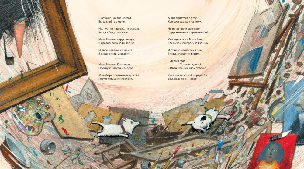 Иллюстрации Олейникова относятся больше к стилю авангард. Дочке 3 года она сказала что книжка для больших детей. Некоторые стихи читаем и сейчас (Веселый старичок, Кошки), но большая часть пока нам не понятна (думаю лет в 5 в самый раз). Формат у книги ОЧЕНЬ большой, почти квадратная. На мой взгляд листы для такой большой книги тонковаты. А в целом книга хороша, украшает нашу детскую библиотеку!