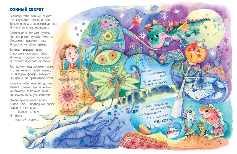 ЗасыпаюшкаВ данный момент этот товар отсутствует в продаже. Возможно, у нас найдется аналогичный или похожий товар здесь. Серия: Веселые книжки для малыша и малышки Ночь — время настоящих чудес, когда по улицам бродят разноцветные сны и кружат над домами драконы, когда оживают игрушки в шкафах и портреты на стенах, по ковру плывут корабли, а с потолка осыпается снег... Стоит только закрыть глаза — и сказка начинается! |