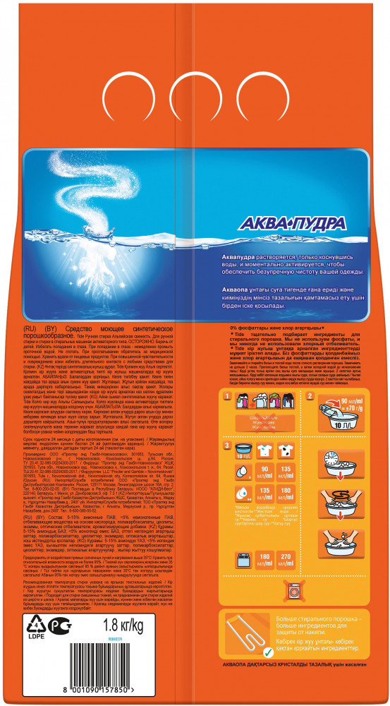 Стиральный порошок «Tide Альпийская свежесть» прекрасно отстирывает вещи и не оставляет следов. Аквапудра растворяется при контакте с водой и мгновенно начинает свое действие, обеспечивая превосходное очищение. Порошок способен справиться даже с самыми трудновыводимыми пятнами на одежде, включая такие непростые области, как манжеты, воротнички и подмышки.