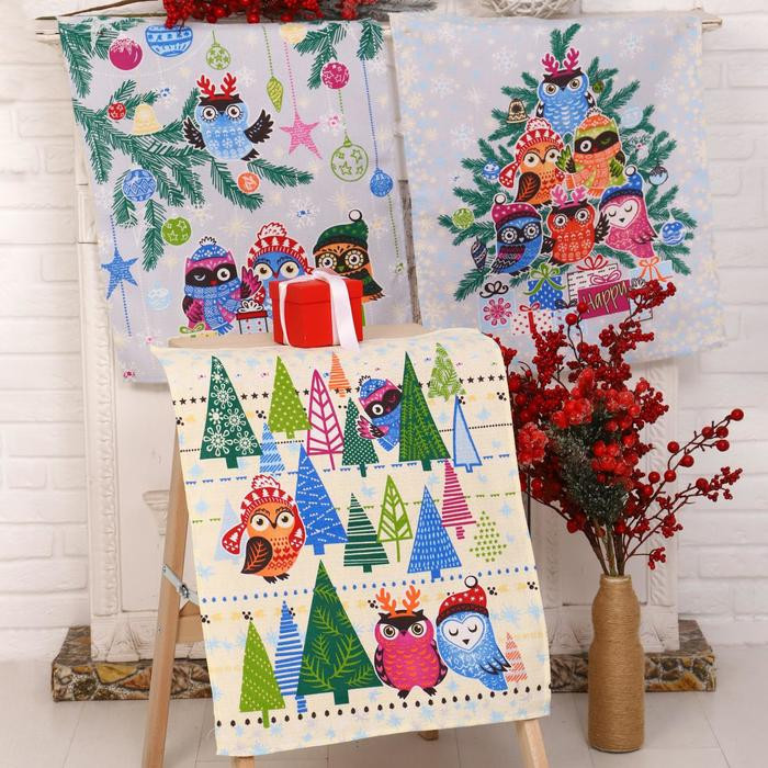 Очень красивый, сюжетный рисунок на полотенцах, который хочется разглядывать в деталях. Расцветки спокойные, могут спрятать неизбежные для кухни пятна. Недостаток - "вафля" ткани плоская, необъёмная. Брала на подарки в пакетах и коробках. Очень большая, неоправданная, разница в цене из-за праздничной упаковки, выполненной из тонкого картона