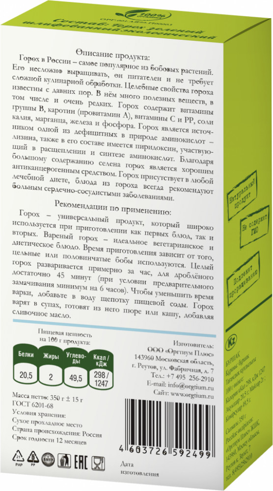 Оргтиум Горох зеленый шлифованныйВ данный момент этот товар отсутствует в продаже. Возможно, у нас найдется аналогичный или похожий товар здесь. Горох — самое популярное из бобовых растений. Его несложно выращивать, он питателен и не требует сложной кулинарной обработки. Целебные свойства гороха известны с давних пор. В нём много полезных веществ, в том числе и очень редких. Горох содержит витамины группы В, каротин (провитамин А), витамины С и РР, соли калия, марганца, железа и фосфора. |