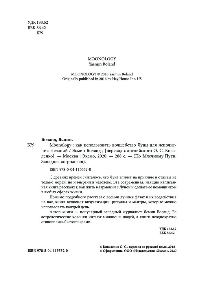Moonology. Как использовать волшебство Луны для исполнения желанийВ данный момент этот товар отсутствует в продаже. Возможно, у нас найдется аналогичный или похожий товар здесь. Серия: По млечному пути. Западная астрология С древних времен считалось, что Луна влияет на приливы и отливы не только морей, но и энергии в человеке. Эта современная, изящно написанная книга расскажет, как жить в гармонии с Луной и сделать ее помощником в любых сферах жизни. |