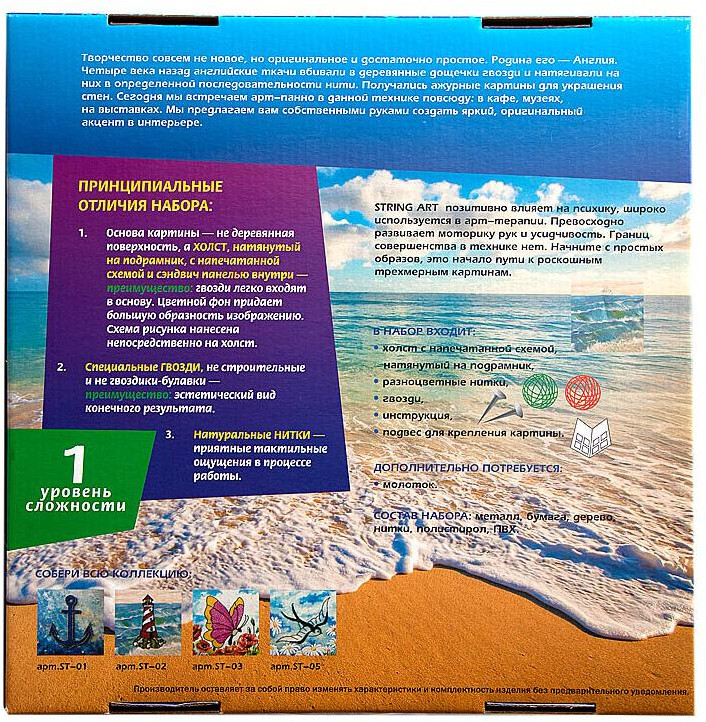 Волшебная мастерская Набор для творчества «Маяк»В данный момент этот товар отсутствует в продаже. Возможно, у нас найдется аналогичный или похожий товар здесь. Творчество совсем не новое, но оригинальное и простое. Родина его — Англия. Четыре века назад английские ткачи вбивали в дощечки гвозди и натягивали на них в определенной последовательности нити. Получались ажурные картины для украшения стен. Вы можете собственными руками создать яркий и оригинальный акцент в интерьере. |