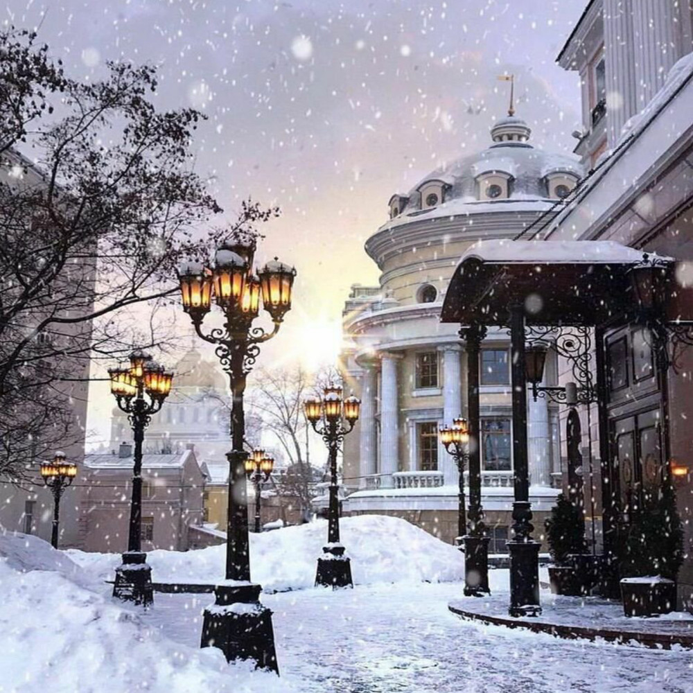 Зимний город, укрытый снегом, можно выложить на тканевом холсте с помощью мозаичных элементов. Уровень сложности средний.