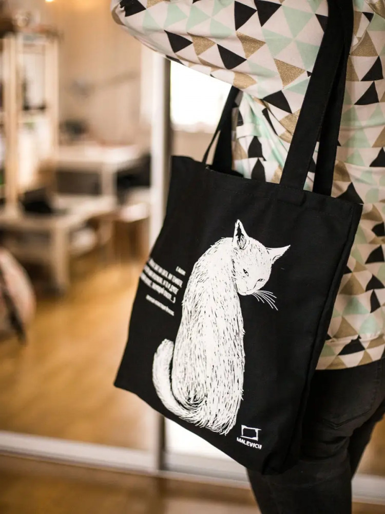 Это то, что я хотела приобрести для походов в магазины. Качество ткани и исполнение отличные.Будучи кошатницей, я оценила и рисунок!