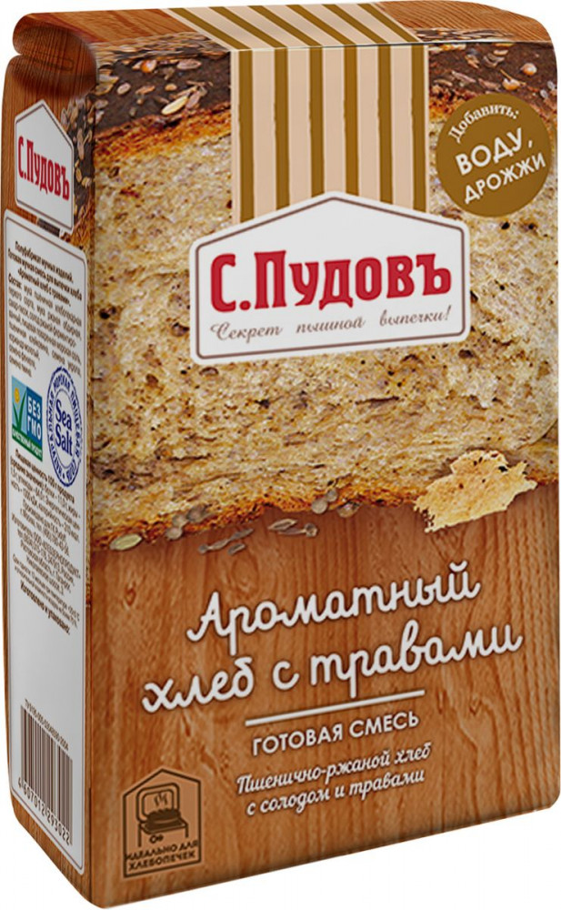 С.Пудовъ Смесь хлебная «Ароматный хлеб с травами»В данный момент этот товар отсутствует в продаже. Возможно, у нас найдется аналогичный или похожий товар здесь. Готовая смесь от торговой марки «С. Пудовъ» для приготовления пшенично-ржаного хлеба с солодом и травами. Сочетание ржаной закваски и букета пряных трав (укропа, фенхеля, тмина, кориандра) придает хлебу великолепный вкус. Такой ароматный хлеб прекрасно дополнит как первые, так и вторые блюда. |