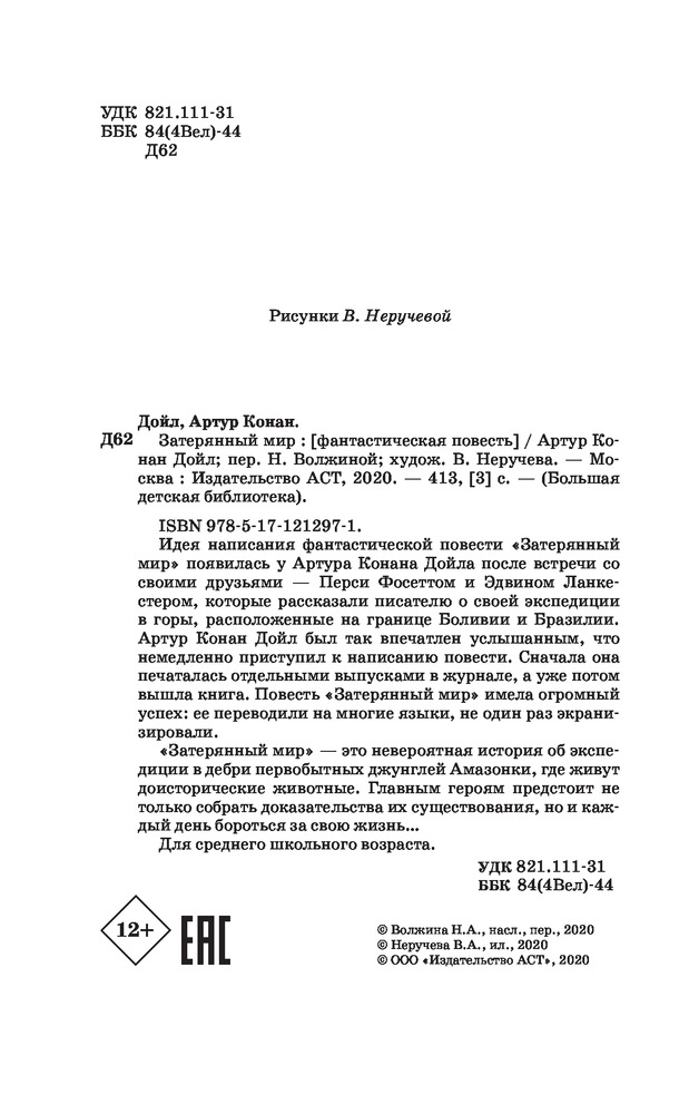 💳 Оплатить за товар можно при получении 🇰🇿 Есть бесплатная доставка по Казахстану 🎁 Копите бонусы с каждой покупки Серия: Большая детская библиотека Идея написания фантастической повести «Затерянный мир» появилась у Артура Конана Дойла после встречи со своими друзьями — Перси Фосеттом и Эдвином Ланкестером, которые рассказали писателю о своей экспедиции в горы, расположенные на границе Боливии и Бразилии. Артур Конан Дойл был так впечатлен услышанным, что немедленно приступил к написанию повести. Сначала она печаталась отдельными выпусками в журнале, а уже потом вышла книга. Повесть «Затерянный мир» имела огромный успех: ее переводили на многие языки, не один раз экранизировали. |