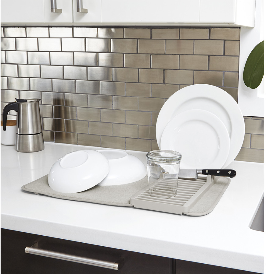 Классная штука. Покупала под настроение, не слишком рассчитывая, что будет функционально, просто захотелось чего-нибудь новенького. Оказалось, что суперская вещь. Действительно, очень хорошо впитывает влагу, быстро сохнет, хорошо держит поставленные вертикально тарелки. По размеру очень хорошо вписывается в стандартную раковину. Не ожидала, что так буду довольна покупкой. Очень советую, для 2-3 комплектов посуды подходит идеально.
