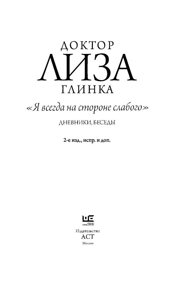 | Доктор Лиза Глинка: «Я всегда на стороне слабого». Дневники, беседы Елизавета Петровна Глинка