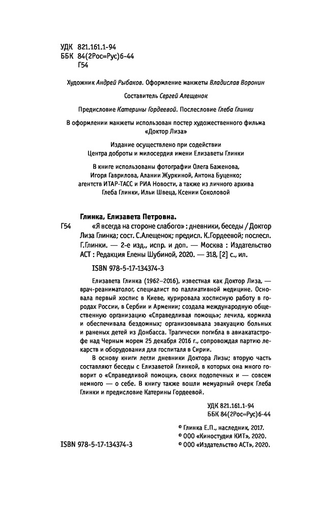 Фильм и книга посвящены памяти Елизаветы Глинки. |