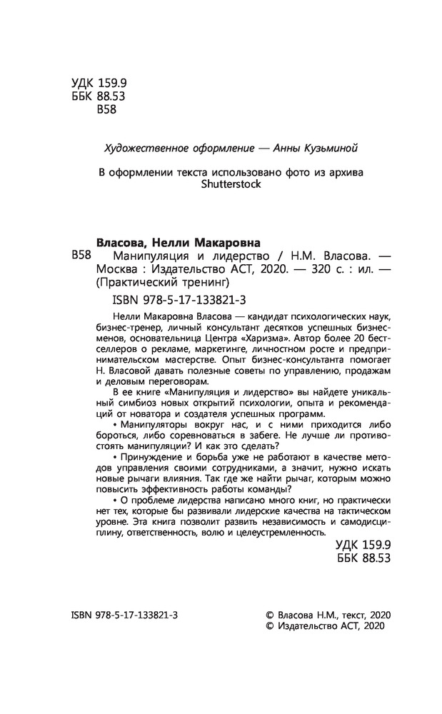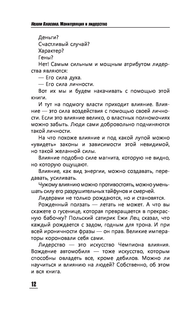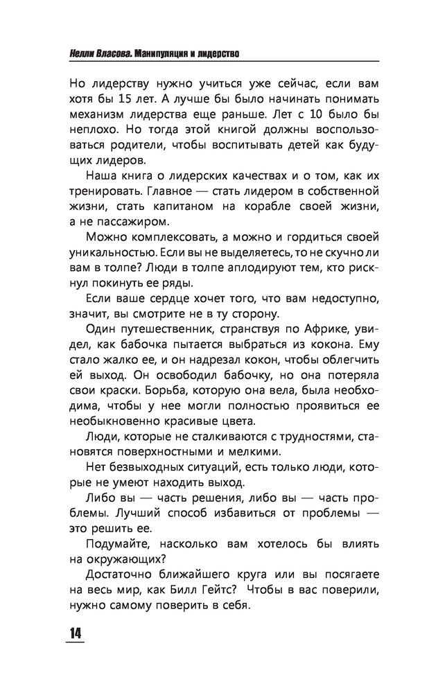 Серия: Практический тренинг Нелли Макаровна Власова — кандидат психологических наук, бизнес-тренер, личный консультант десятков успешных бизнесменов, основательница Центра «Харизма». Автор более 20 бестселлеров о рекламе, маркетинге, личностном росте и предпринимательском мастерстве. Опыт бизнес-консультанта помогает Н. Власовой давать полезные советы по управлению, продажам и деловым переговорам. |