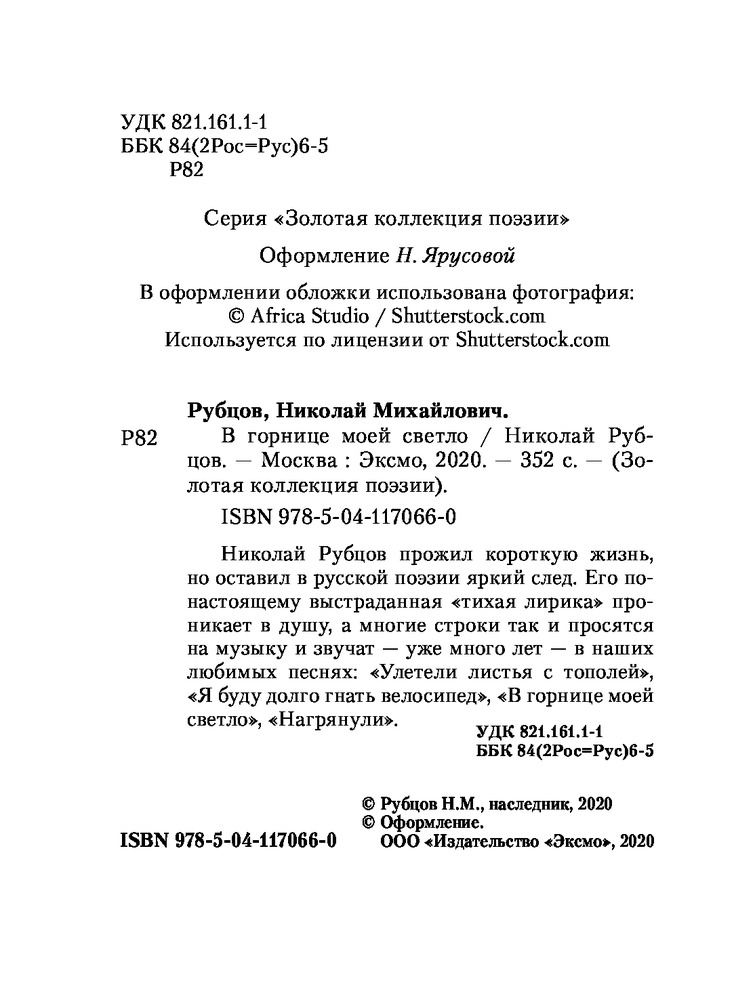 В данный момент этот товар отсутствует в продаже. Возможно, у нас найдется аналогичный или похожий товар здесь. Серия: Золотая коллекция поэзии Николай Рубцов прожил короткую жизнь, но оставил в русской поэзии яркий след. Его по-настоящему выстраданная «тихая лирика» проникает в душу, а многие строки так и просятся на музыку и звучат — уже много лет — в наших любимых песнях: «Улетели листья с тополей», «Я буду долго гнать велосипед», «В горнице моей светло», «Нагрянули». |
