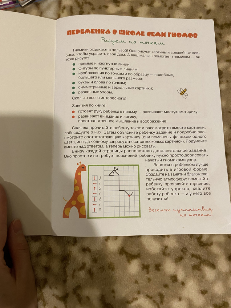 💳 Оплатить за товар можно при получении 🇰🇿 Есть бесплатная доставка по Казахстану 🎁 Копите бонусы с каждой покупки Серия: Переменка в школе семи гномов «Рисуем по точкам» из серии «Переменка в Школе семи гномов» - занимательное пособие, адресованное детям 5-7 лет для дополнительных занятий в детском саду и дома. Выполняя увлекательные задания, ваш ребенок научится: |