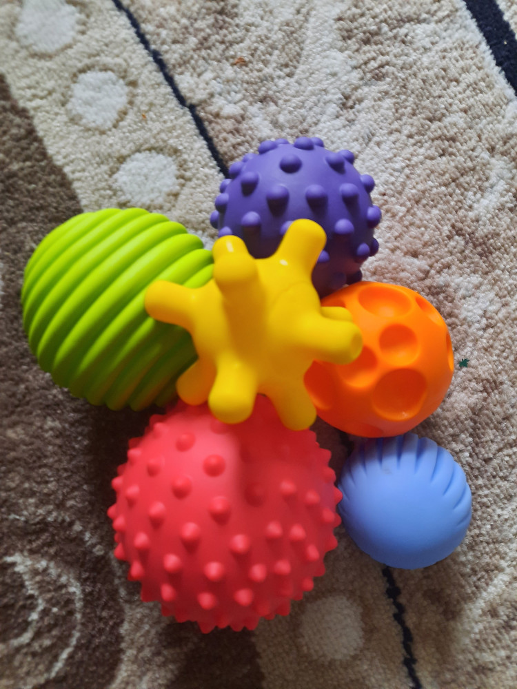 Мячики хорошие. Дочка 1,10 заменила. Можно предлагать ребенку с 6 месяцев. Но, Монтессори педагоги рекомендуют не давать игрушки "кислотных" цветов, лучше "спокойных" тонов. Выбор за вами