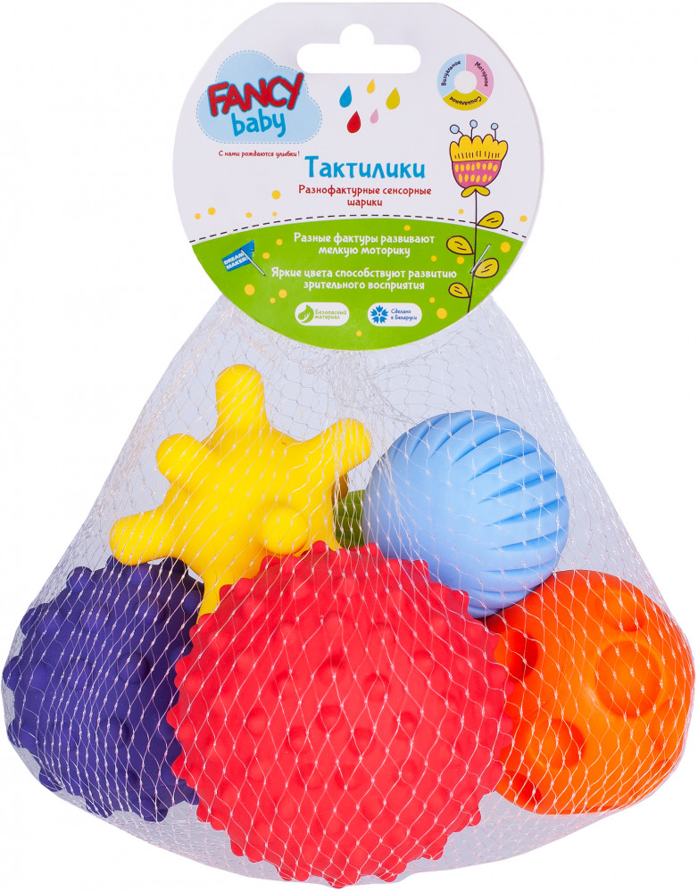 Fancy Набор мячиков «Тактилики»В данный момент этот товар отсутствует в продаже. Возможно, у нас найдется аналогичный или похожий товар здесь. Набор «Тактилики» состоит из разнофактурных шариков разных насыщенных и привлекательных цветов. Играя с каждым из них, малыш будет развивать мелкую моторику пальчиков, координацию движений и сенсорное восприятие, а также узнает основные цвета радужного спектра. |
