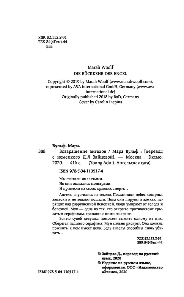 Пришла в отличном состоянии!! История очень интересная, Ангелы Венеция всё описано очень атмосферно.