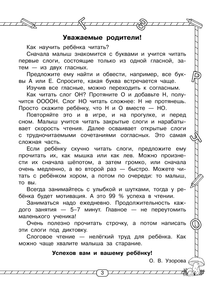 Тренажер по чтению. Начальный уровеньОльга Васильевна Узорова, Елена Алексеевна Нефедова В данный момент этот товар отсутствует в продаже. Возможно, у нас найдется аналогичный или похожий товар здесь. Серия: Быстрое обучение: методика О.В. Узоровой Пособие «Тренажёр по чтению. Начальный уровень» известных педагогов-практиков О. В. Узоровой и Е. А. Нефёдовой поможет ребёнку автоматизировать навык слогового чтения. Выполняя задания, ребёнок научится читать открытые и закрытые слоги из одной, двух, трёх букв, слова и предложения, постепенно увеличивая скорость чтения, сможет развить речевые навыки. |
