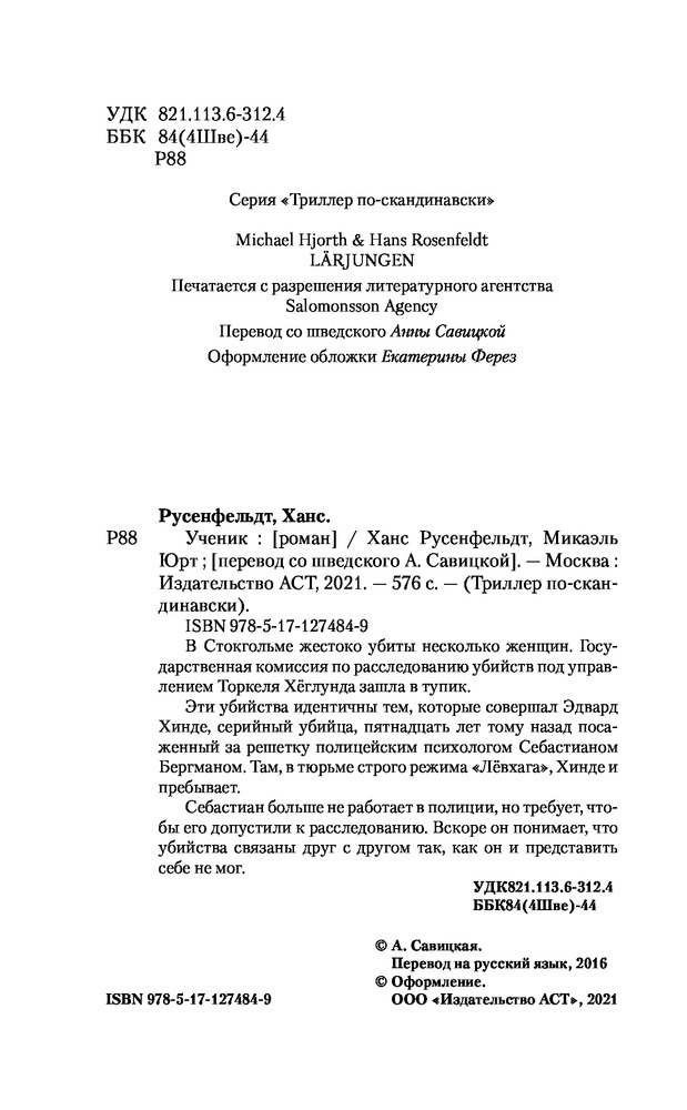 В данный момент этот товар отсутствует в продаже. Возможно, у нас найдется аналогичный или похожий товар здесь. Серия: Триллер по-скандинавски В Стокгольме жестоко убиты несколько женщин. Государственная комиссия по расследованию убийств под управлением Торкеля Хёглунда зашла в тупик.