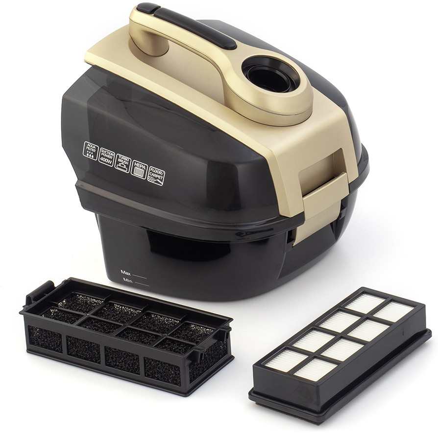 Пылесос Vitek VT-8100 с аквафильтром, а также с функцией автоматического сматывания шнура и пятью различными насадками справится как с песком и шерстью, так и с мелкой пылью, обеспечивая чистоту и свежесть помещения. Установленный в пылесосe Vitek VT-8100 фильтр тонкой очистки воздуха НЕРА (High Efficiency Particulate Air — высокоэффективная задержка частиц) позволяет задерживать мельчайшие частицы аллергенов и микроорганизмов, и, соответственно, обеспечивать идеальную чистоту воздуха. НЕРА-фильтр Vitek можно промывать.