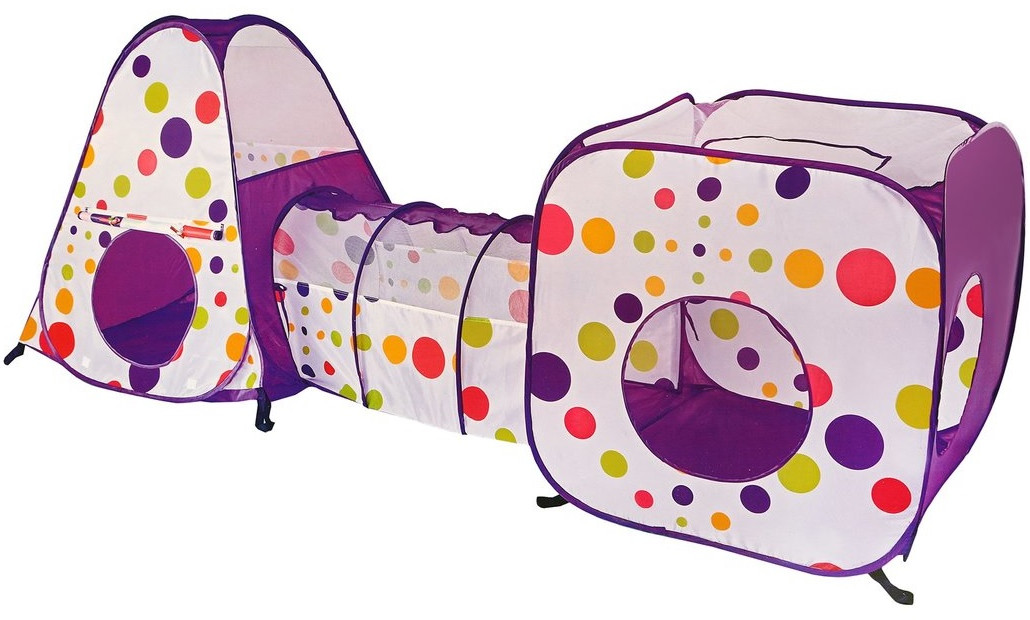 Наша игрушка Палатка игровая с тоннелемВ данный момент этот товар отсутствует в продаже. Возможно, у нас найдется аналогичный или похожий товар здесь. Игровая палатка с туннелем обязательно понравится ребёнку своим необычным оформлением. В ней так много пространства, где можно играть! Игровой комплекс состоит из двух палаток, соединённых между собой туннелем. Изделие легко складывается и раскладывается, а в сложенном виде не занимает много места. |