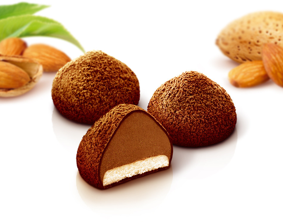 Очень приятное сочетание нежной начинки мокко с марципаном в темном шоколаде.