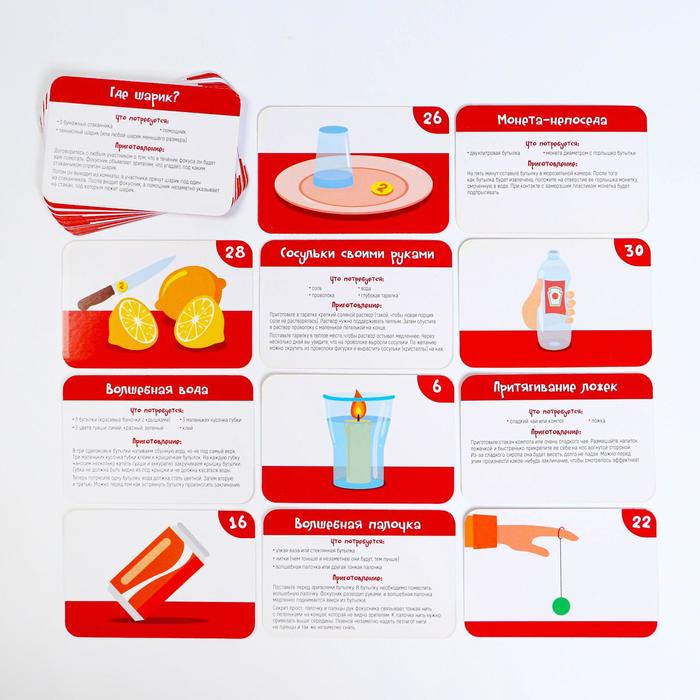 Хотите удивить друзей и родителей на празднике? Тогда эти фокусы — то, что вам нужно! Здесь собрано 30 разных трюков, которые заставят гостей поверить в волшебство. Все фокусы можно провести в домашних условиях, не прибегая к помощи специального реквизита. Поэтому скорее выбирайте карточку, изучайте ее и показывайте настоящую магию!