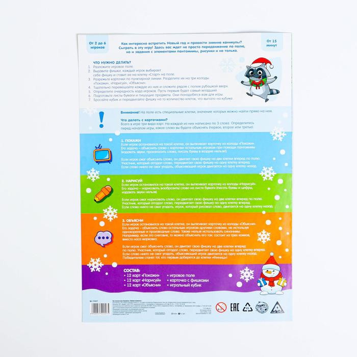 Эта занимательная новогодняя игра поможет весело провести праздничные дни. Она подойдет для большой компании и посиделок с самыми близкими людьми. Тематическое оформление игры подарит настоящее новогоднее настроение.