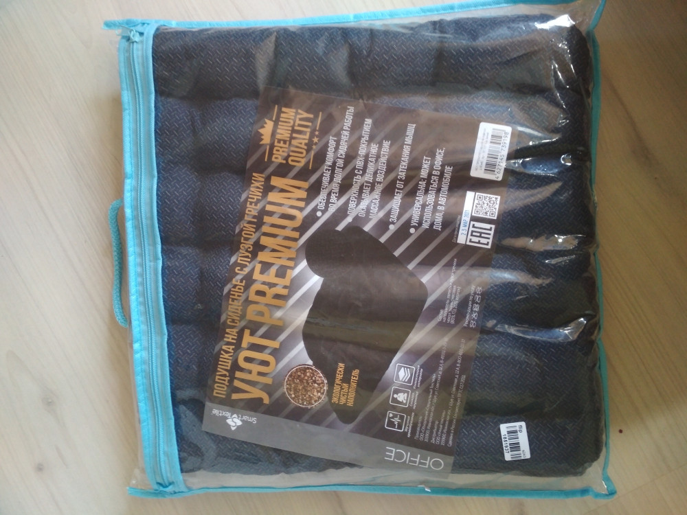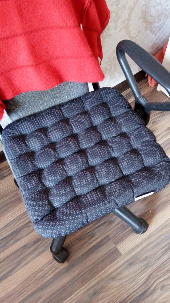Брала для себя. Качество очень хорошее и сидеть комфортно, мягче чем на голом стуле, но она все равно твердая! Худым людям подойдет что-нибудь помягче.